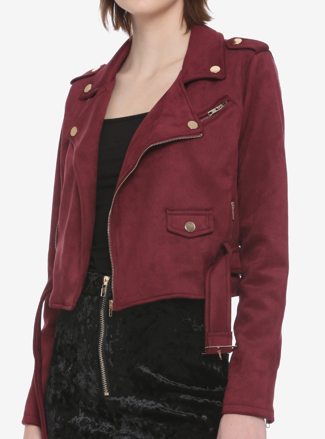 46 out of 5 stars 13515. Burgundy Faux Suede Moto Jacket Soft and smooth faux suede jacket Burgundy color Collar and lapel Zipper closure Zipper pockets Roomy fit Stretchy 95 poly 5 spandex Imported item. Burgundymaroon faux suede moto jacket.