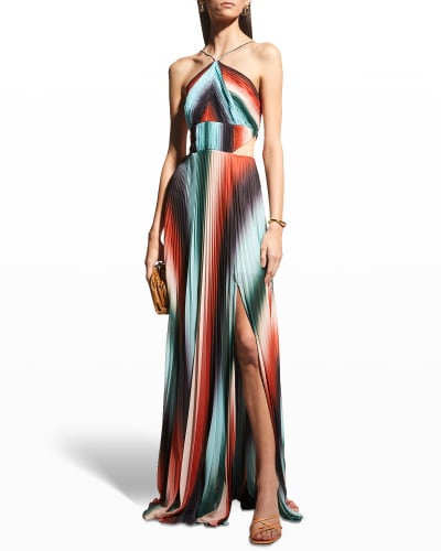 Eileen Stripe Halter Neck Silk Gown. Halterneck Sleeveless Zipper at back Open back Tie at waist Slit at front Silk Dry clean Imported SIZE FIT A-line silhouette About 51 from shoulder. Free shipping and guaranteed authenticity on Cinq Sept Eileen Stripe Color-block Silk-georgette Halterneck Gown In Rainbow Long Formal Dress Size 2 XS listed by Kia. Colorblock stripes and a halter neck finish a sleeveless silk gown for retro-inspiration. Linea Chevron Print Backpack. Valentino Beige Snakeskin Printed Silk. Was36500 Up to 56 off select colorssizes.