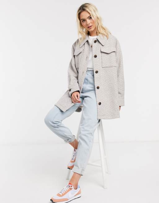 Buttoned loose fit shacket light grey VERO MODA Product details Casual Loose boyfriend fit Length. MBs light-grey design is cut in wool-blend fabric with patched pockets and a five-button closure. Exclusive to ASOS our universal brand is here for you and comes in all our fit ranges.